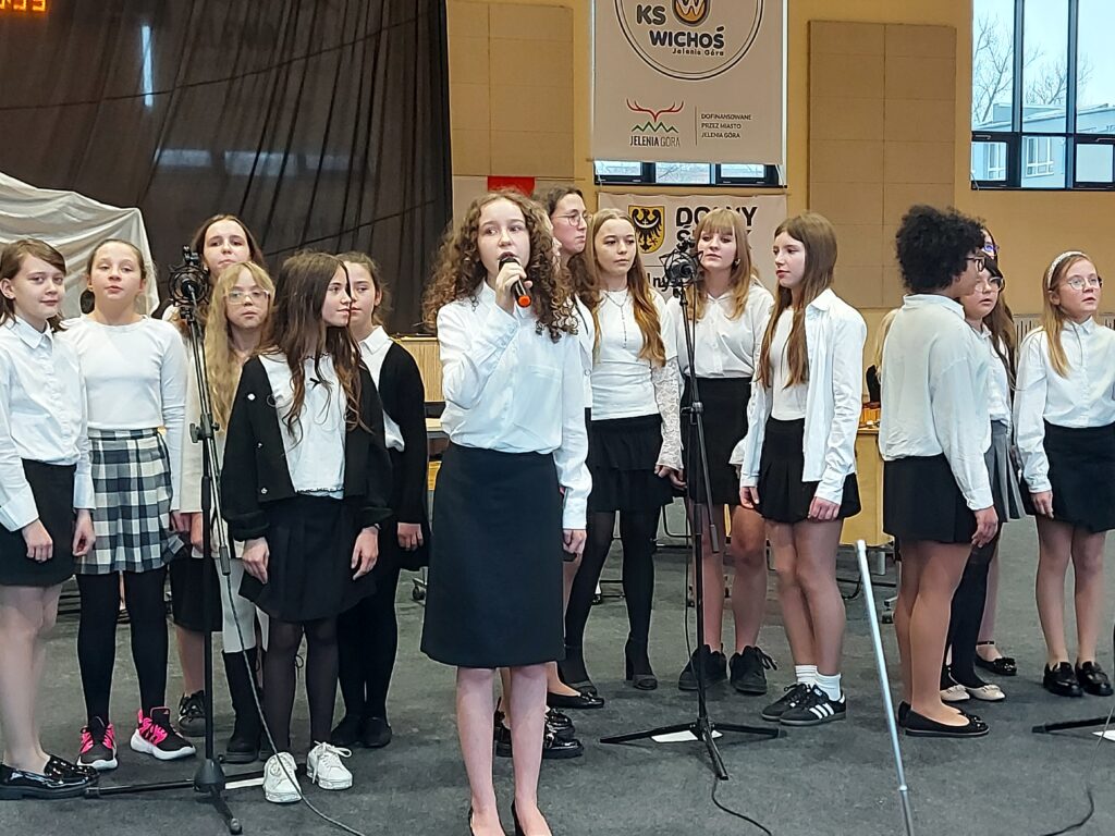 29 stycznia w naszej szkole odbył się wyjątkowy koncert kolęd i pastorałek, który na długo pozostanie w pamięci uczniów, nauczycieli oraz zaproszonych gości. Wydarzenie przygotował zespół wokalny oraz instrumentalny pod kierunkiem pani Anny Szewczuk, która z ogromnym zaangażowaniem czuwała nad artystycznym poziomem występu.